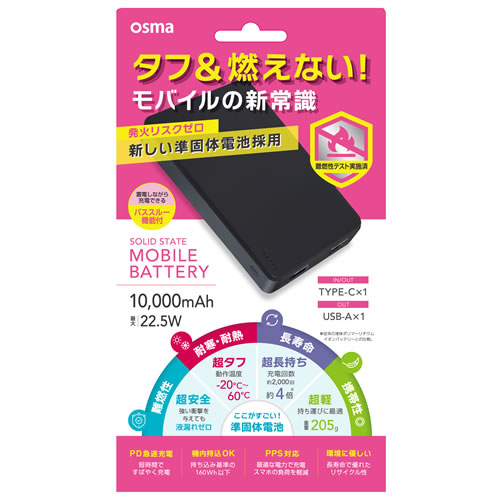SSLCM50-CCBK準固体モバイルバッテリー 5000mAh 22.5W ブラック -
