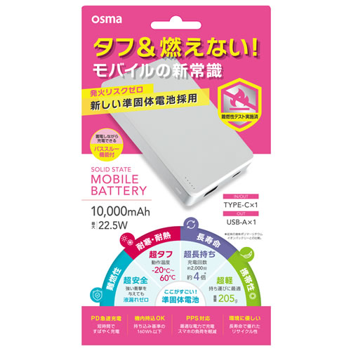 SSLCM50-CCWH準固体モバイルバッテリー 5000mAh 22.5W ホワイト -