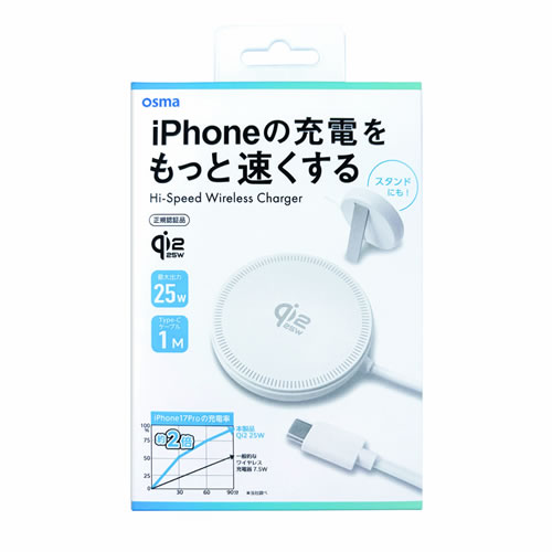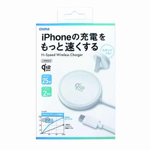WLC-Q22C200WH【Qi2 25W】正規認証品 スタンド機能付きワイヤレス充電ケーブル 2m ホワイト -