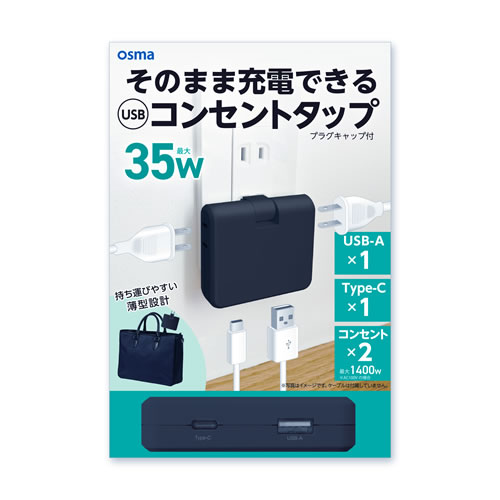 TP-A2UCP35BKUSB付コンセントタップ AC2口 USB35W(C*1 A*1) ブラック -
